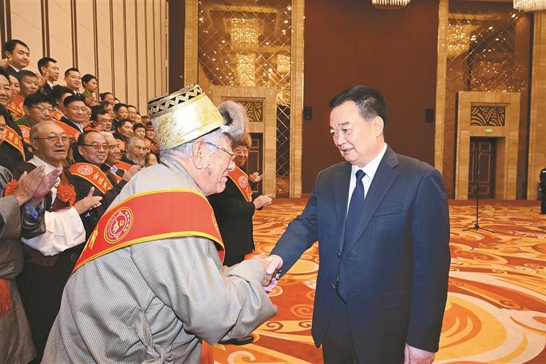 11月11日,自治区党委书记王君正在拉萨会见全区离退休干部先进集体和先进个人代表。