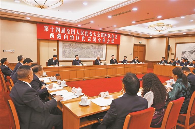 3月5日下午,十四届全国人大四次会议西藏代表团举行全体会议,集中审议政府工作报告。